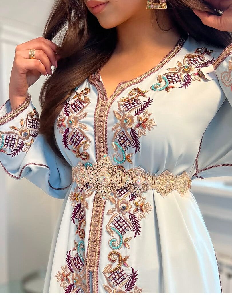 Kombinieren Sie Ihren Kaftan oder Ihre Takschita mit unseren handverlesenen Accessoires und setzen Sie stilvolle Akzente. Wir bieten Ihnen eine erlesene Auswahl an hochwertigen Halsketten, eleganten Ohrringen, raffinierten Schulterketten, edlen Armbändern, stilvollen Taschen und authentischen marokkanischen Gürteln. Jedes Stück wurde mit Liebe zum Detail ausgewählt, um Ihren Look perfekt zu ergänzen und ihn einzigartig zu machen.